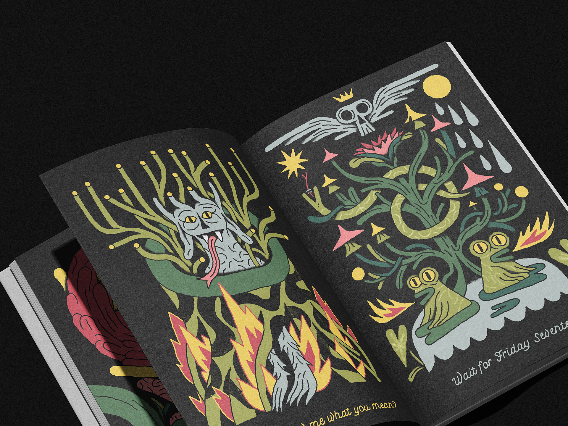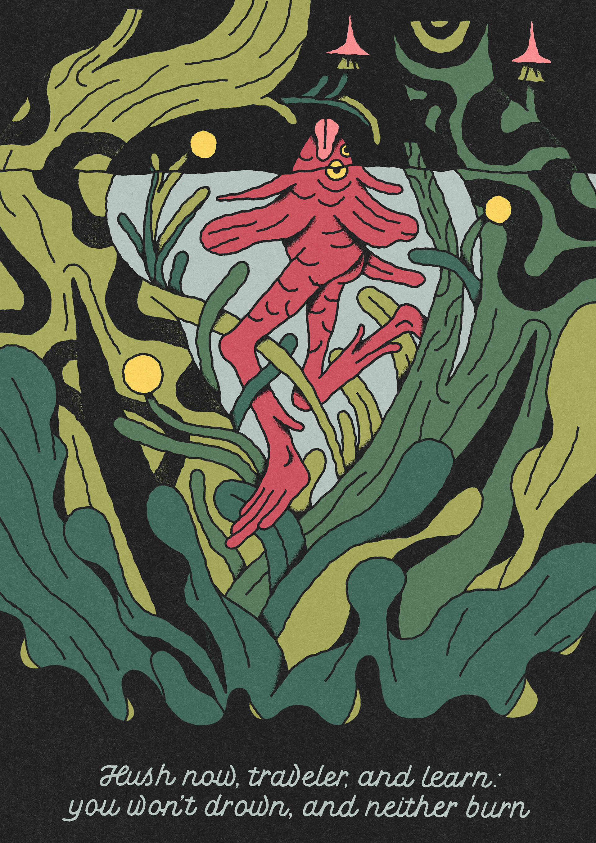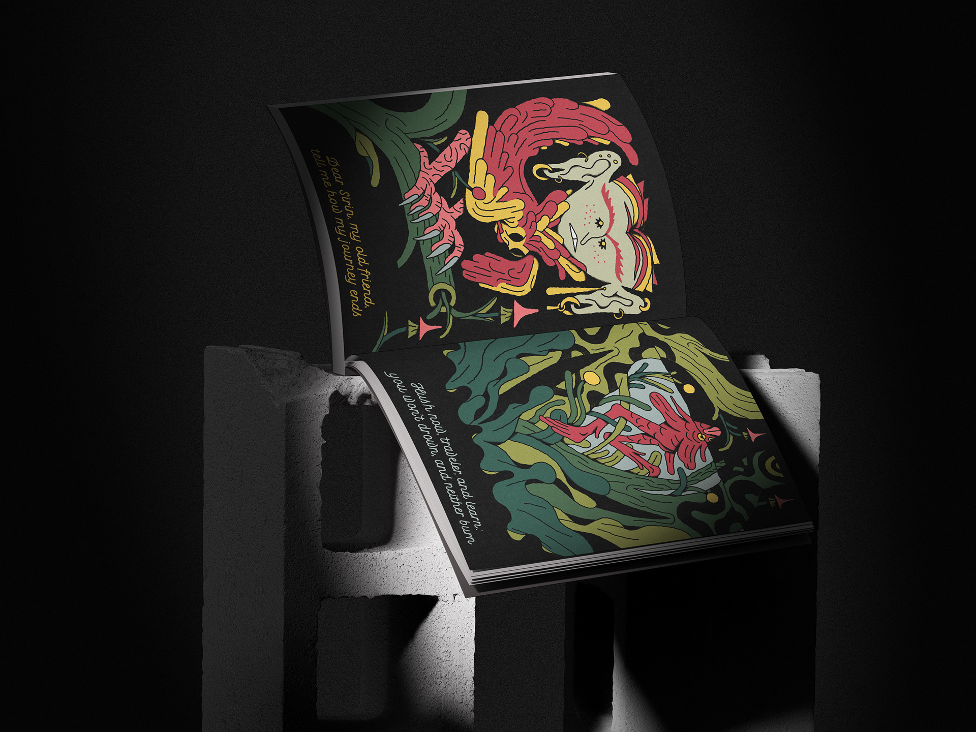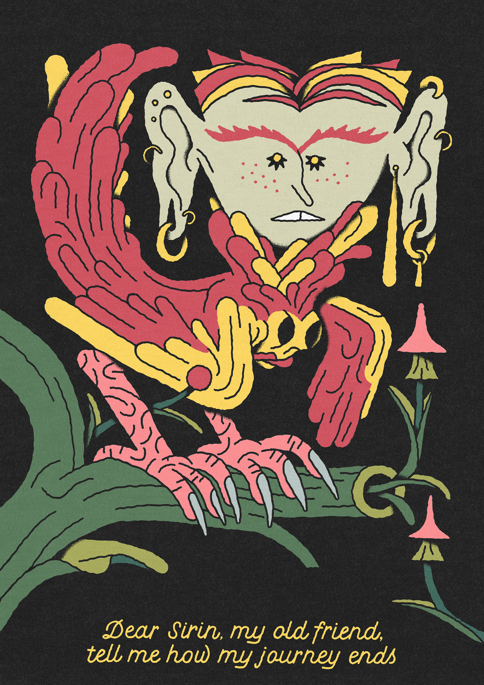 A series of illustrations and a short poem centered on the mythical bird Sirin, who greets travelers at the threshold of their journey and speaks in a quiet, cryptic language of fate. Each encounter carries a hint, a warning, or a whisper of what lies ahead. The Traveler is never shown, leaving their identity open to interpretation — anyone, even you, may step into this mysterious world. The series was published in the 17th edition of LÖK Zine, titled FRIDAY / VENERDÌ.