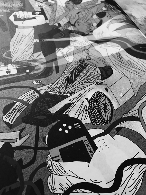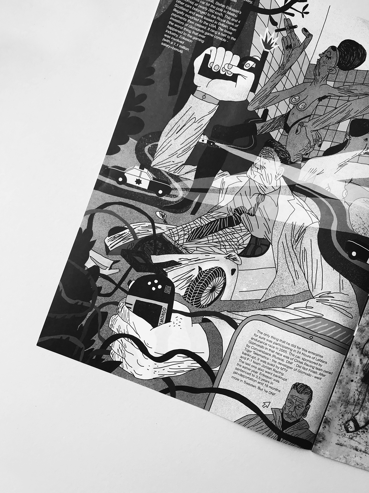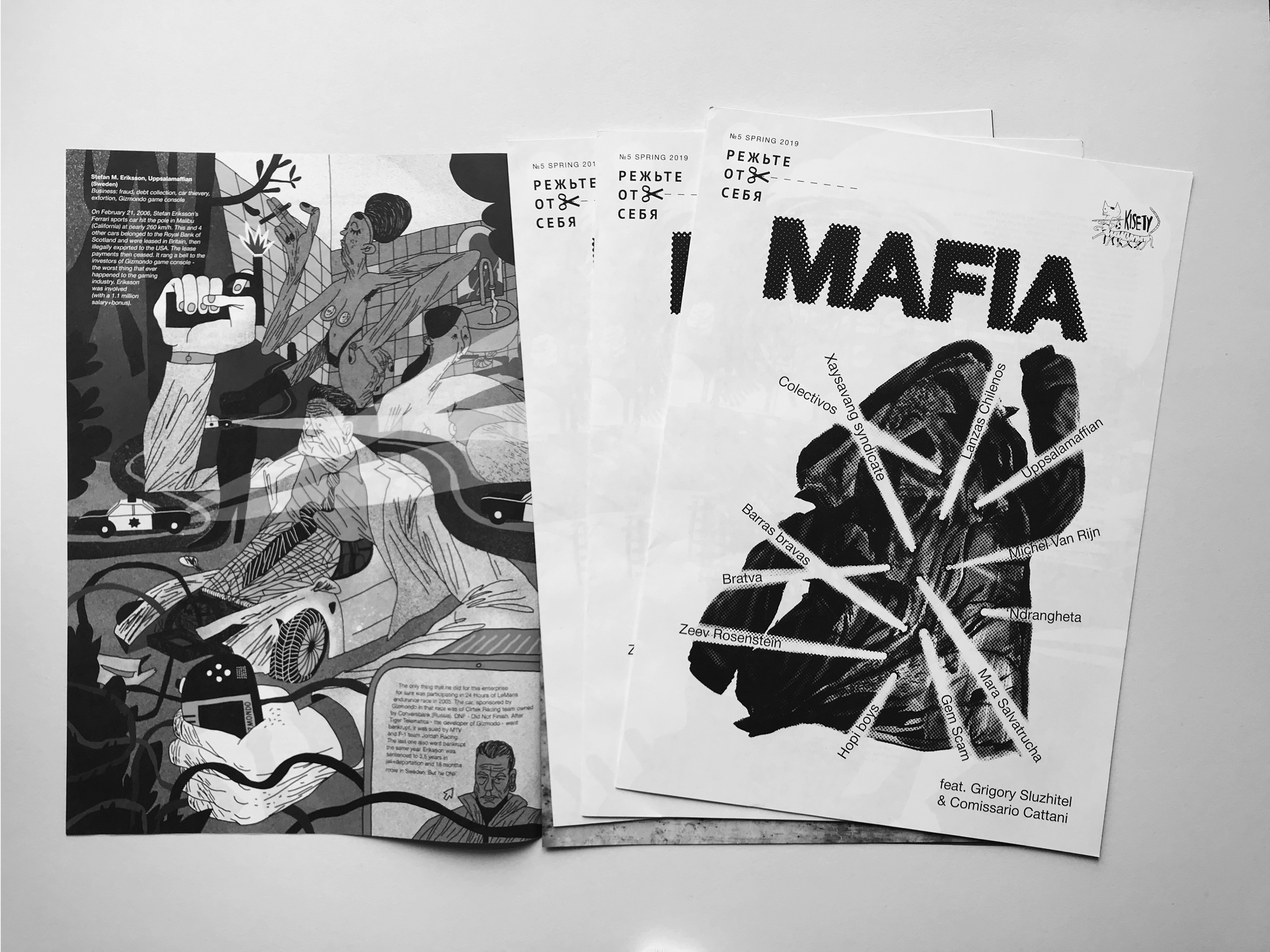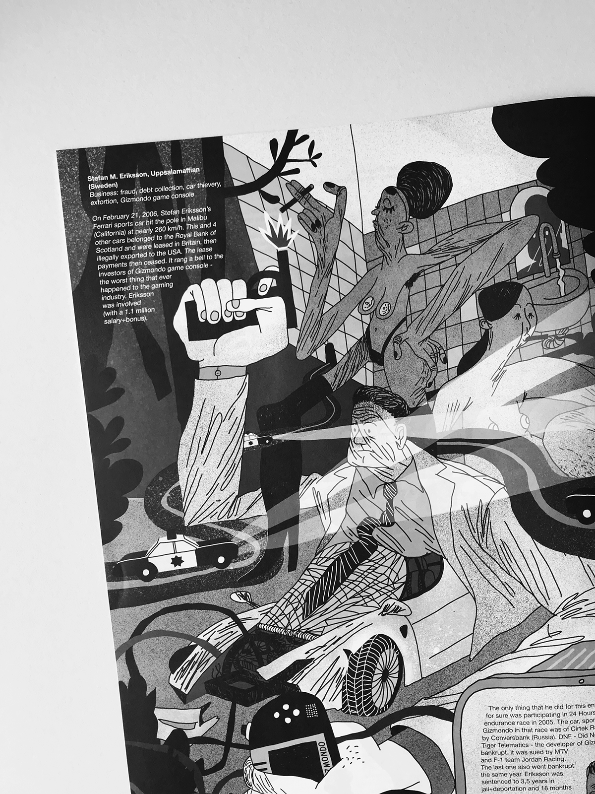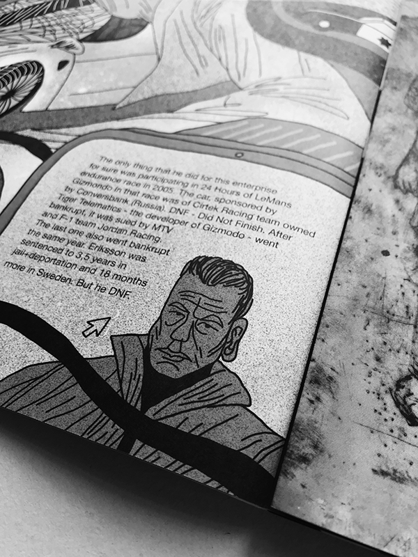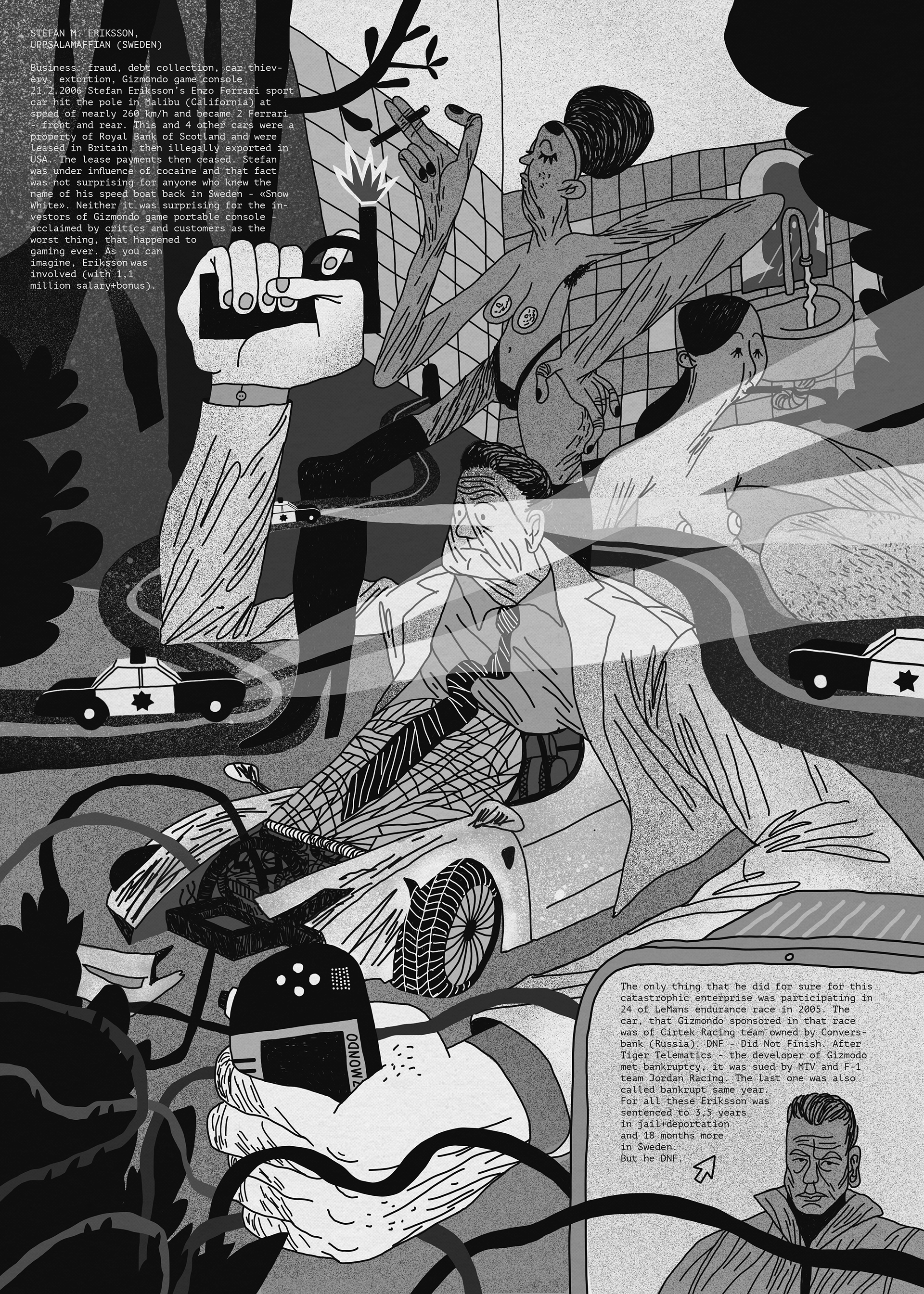 Illustration of Stefan Eriksson and Uppsala Mafia for the periodical newspaper Rezh'te Ot Sebya issued by Kisety art group.
