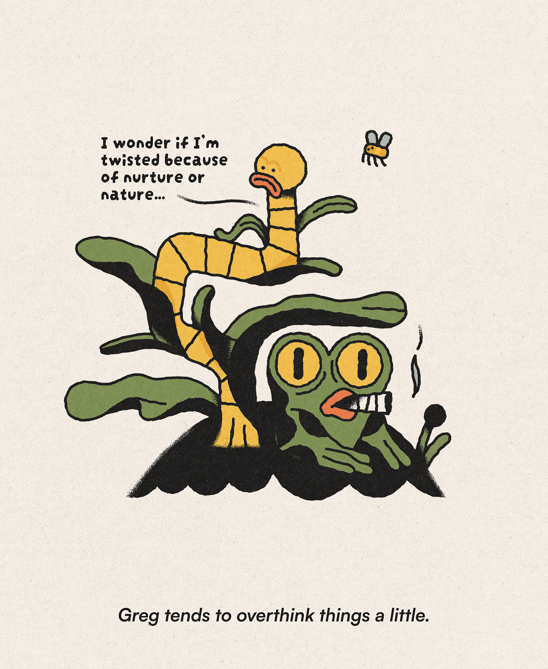 A short comic story about a toxic yet surprisingly tender relationship between two friends who are complete opposites. Part of the Sheets & Doodles project.